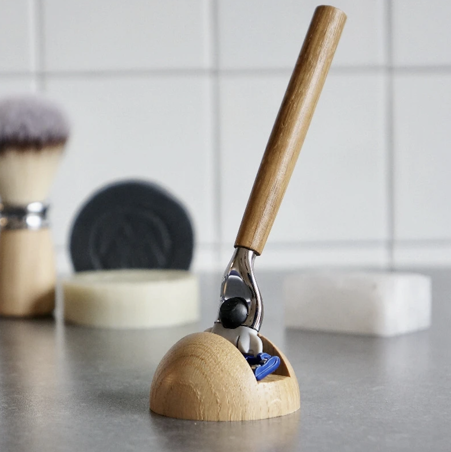 ● Un support en bois de la même essence que votre rasoir