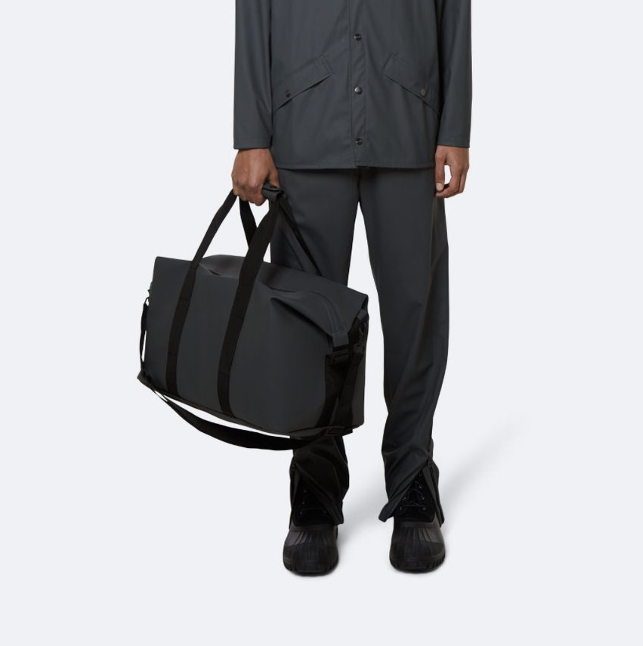 Weekend Bag est l’interprétation de Rains d’un sac de voyage classique. Ce sac Rains comprend un compartiment principal spacieux, des poignées en sangle robustes, une bandoulière amovible et des boucles coulissantes réglables sur les côtés. Le sac de week-end est fabriqué à partir d’un tissu mat et imperméable et complété d’une fermeture à glissière résistante à l’eau et d’une quincaillerie mate.