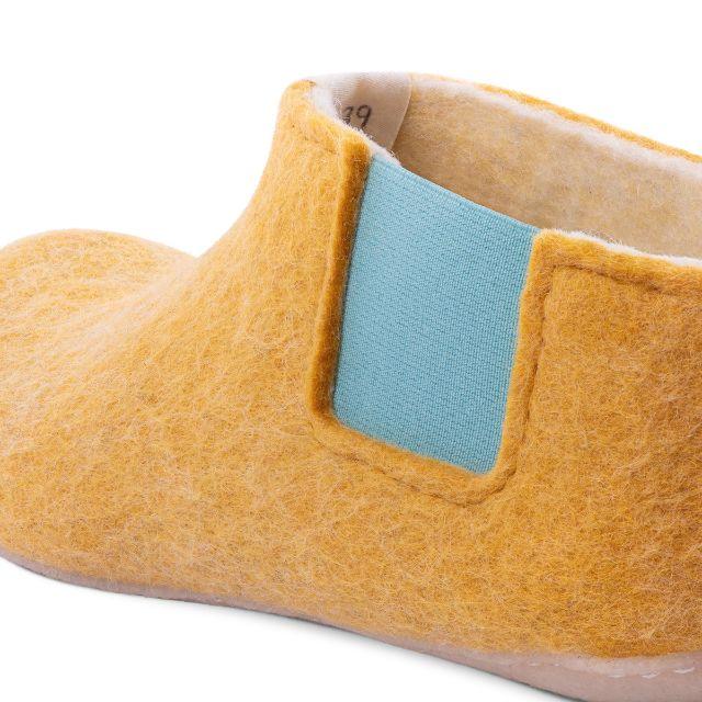 Soins: Ne lavez pas en machine et n’utilisez pas de détergents. Les machines à laver, les savons agressifs et les produits chimiques/alcools peuvent faire fondre les semelles naturelles. Nettoyez la surface avec un chiffon humide pour enlever la saleté. Retirez tout débris dans les semelles avec une pince à épiler.