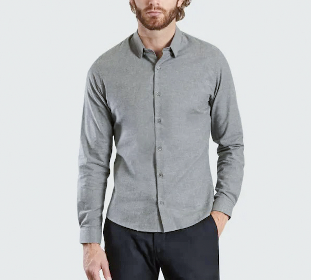 Chemise en coton flanelle de grande qualité. Couleur grise. Les manches longues avec des détails aux épaules, un col français boutonné avec des boutons sous pattes de col, et enfin le fit ajusté font de cette pièce un incontournable des saisons automne hiver.