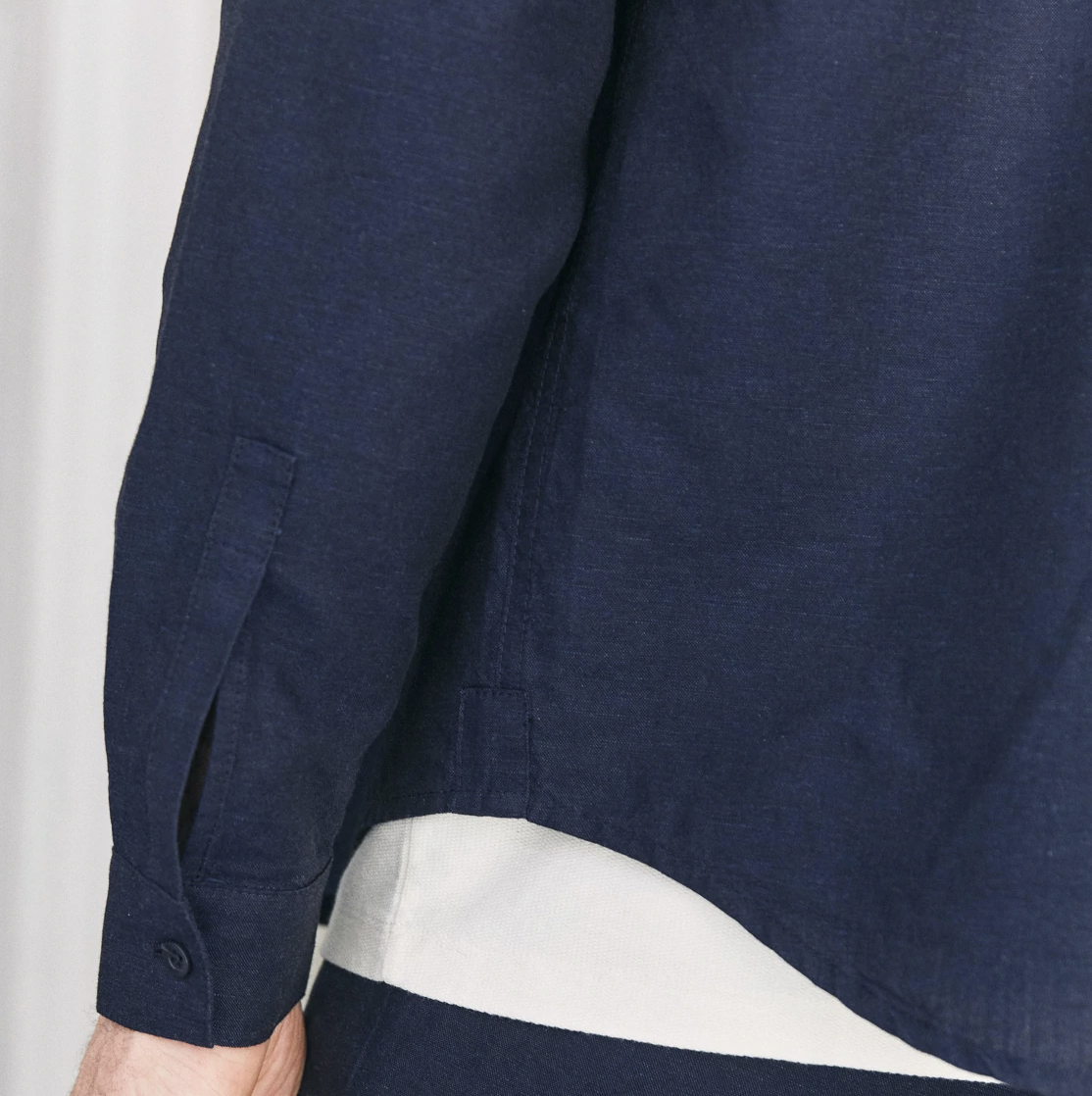 Poche poitrine, détail de boucle à l’arrière et boutons végétaliens.