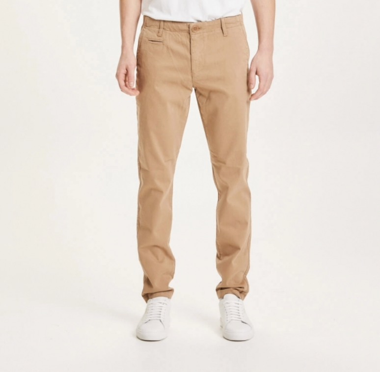 Les chinos Chuck de KnowledgeCotton Apparel sont confectionnés en sergé de coton biologique / élasthanne. Coupe ajustée avec des jambes étroites, des passants de ceinture et des poches arrière.