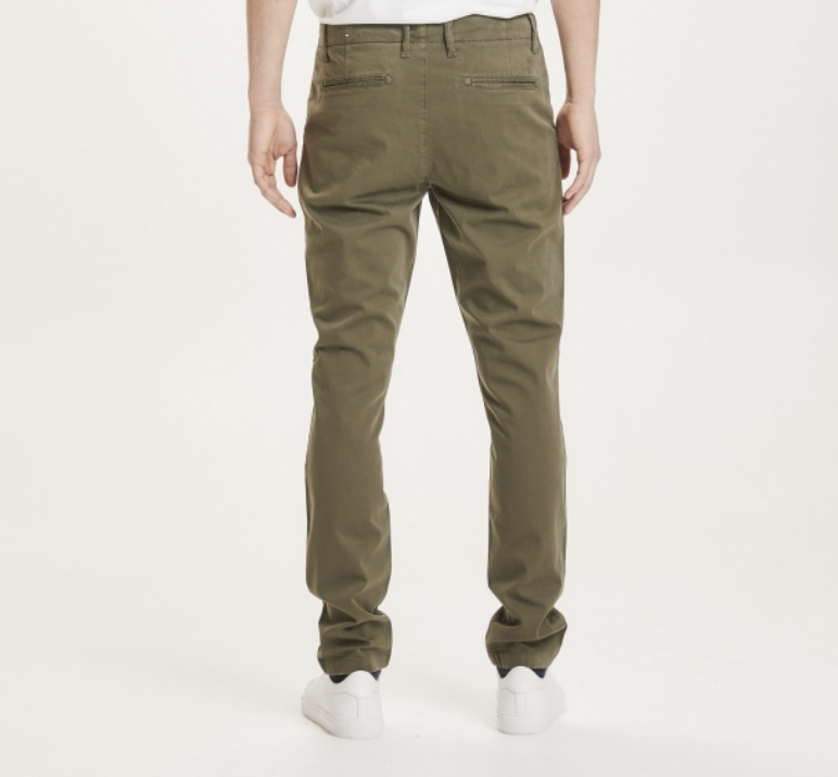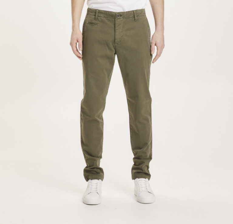 Les chinos Chuck de KnowledgeCotton Apparel sont confectionnés en sergé de coton biologique / élasthanne. Coupe ajustée avec des jambes étroites, des passants de ceinture et des poches arrière.