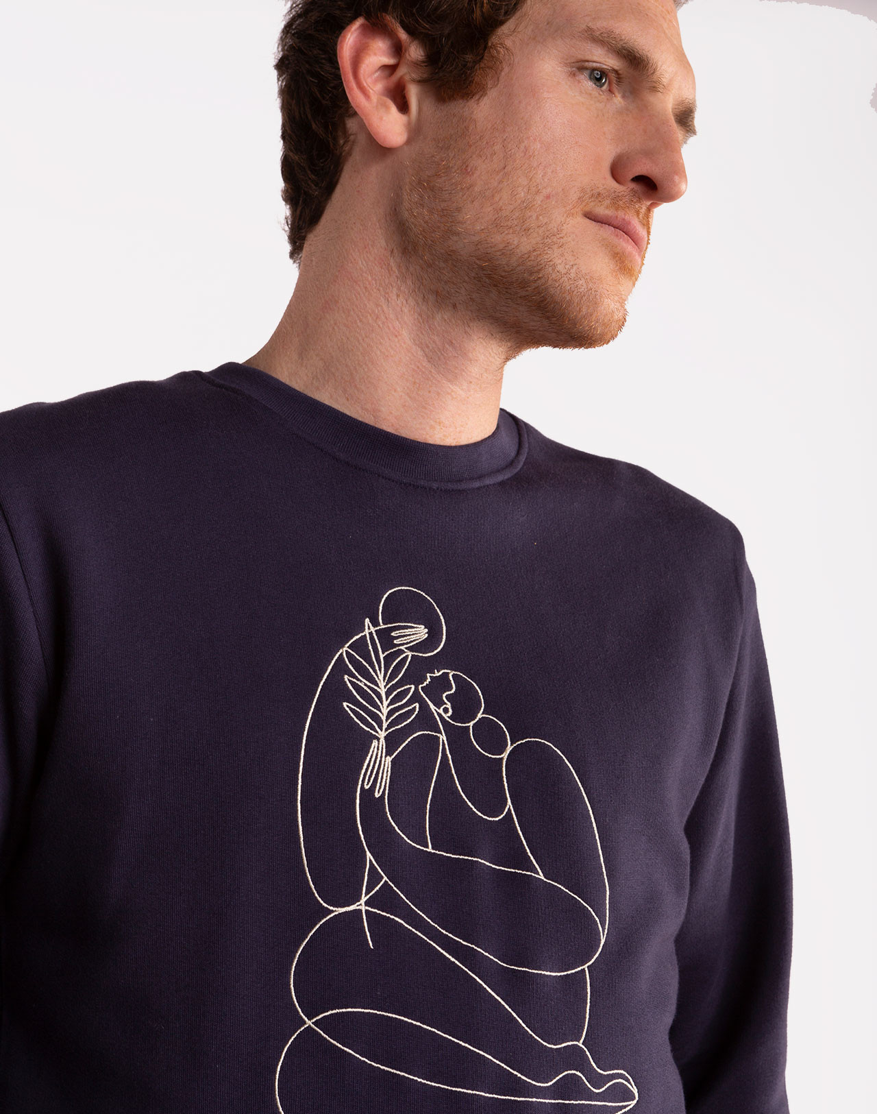 Sweat avec broderie centrée dessinée par l’artiste Maggie Stephenson.