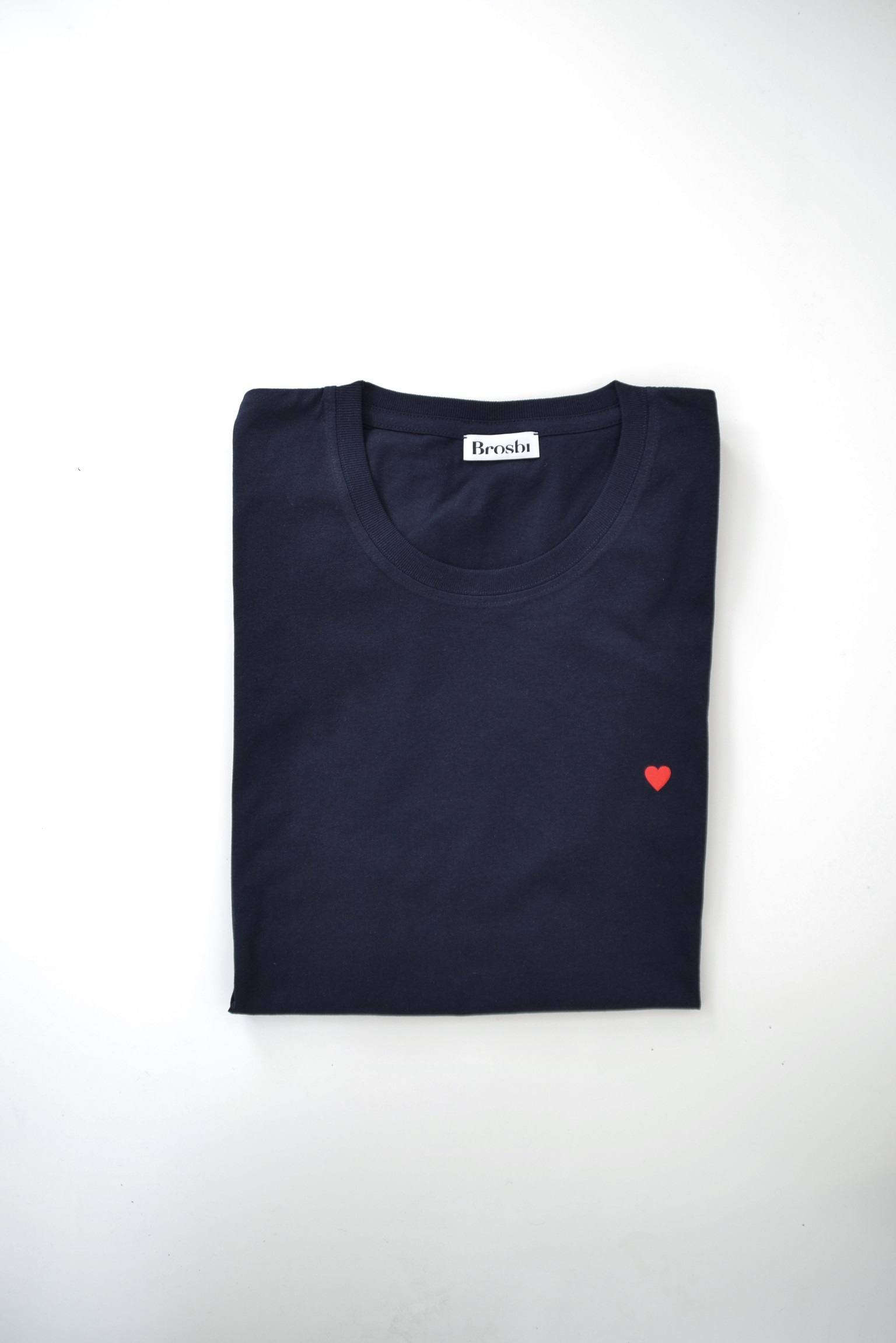 T-shirt Brosbi Crewneck avec un cœur rouge sur la poitrine gauche.