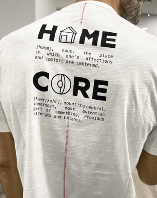 T-SHIRT À MANCHES COURTES EN COTON FLAMMÉ BIOLOGIQUE MARQUÉ À LA CLAVICULE. COUPE CLASSIQUE. COLONNE VERTÉBRALE PIQUÉE EN ROUGE.