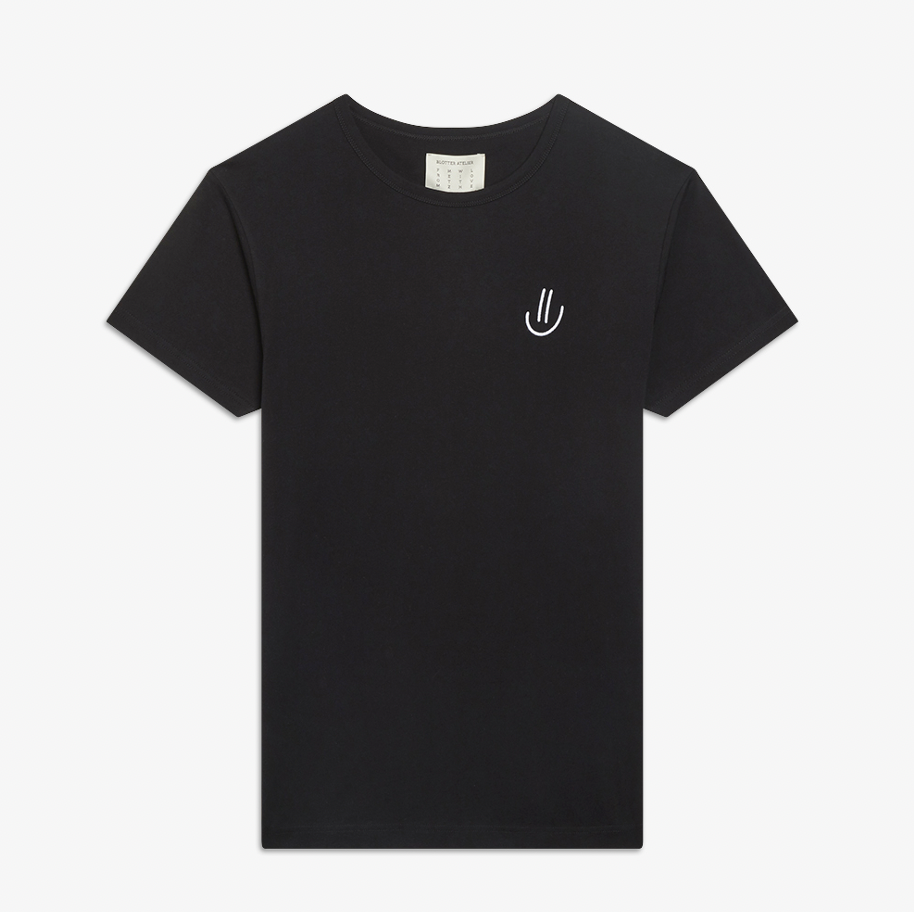 Encolure arrondie, finition ourlet surpiqué, broderie « SMILE » sur le cœur.