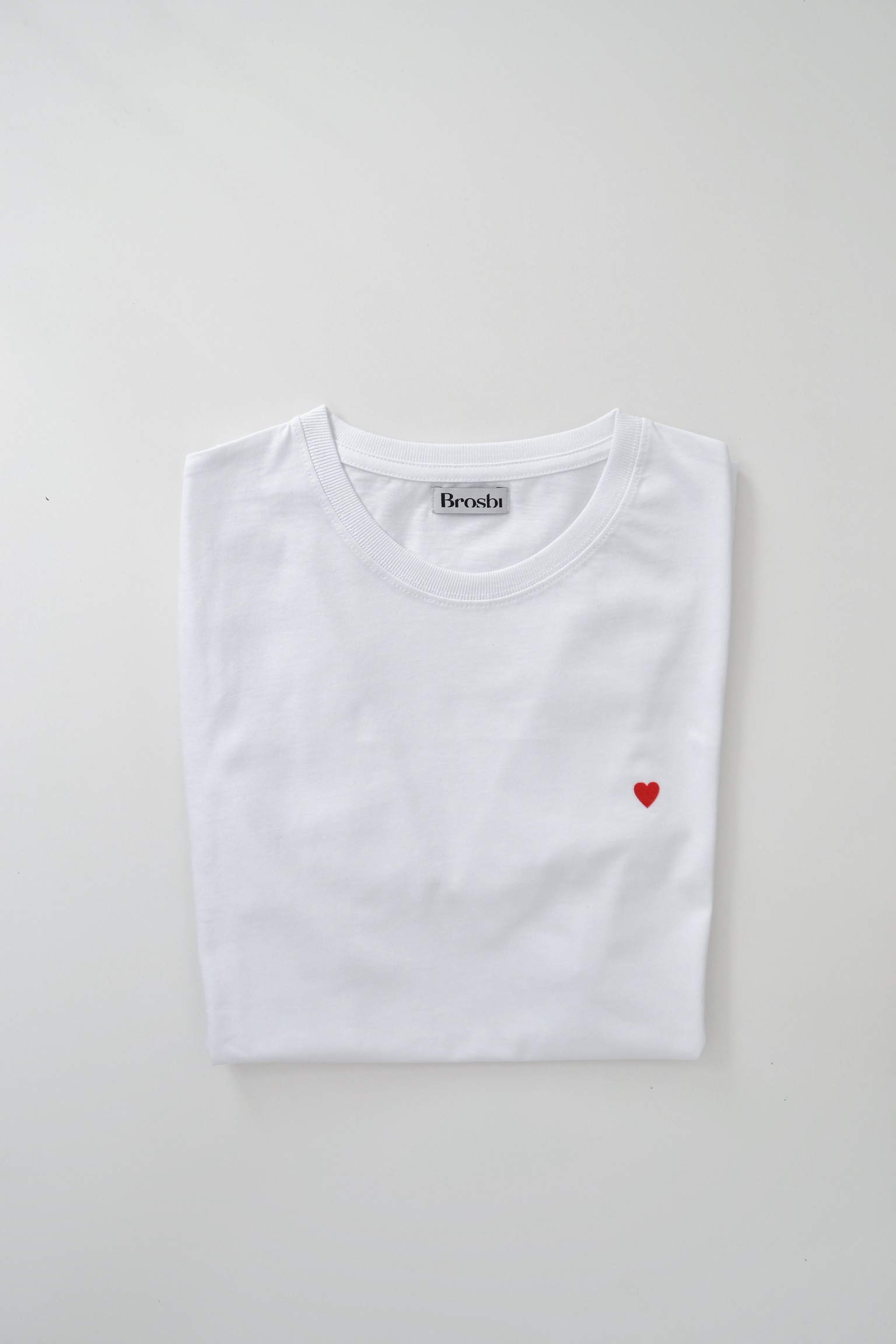 T-shirt Brosbi Crewneck avec un cœur rouge sur la poitrine gauche.