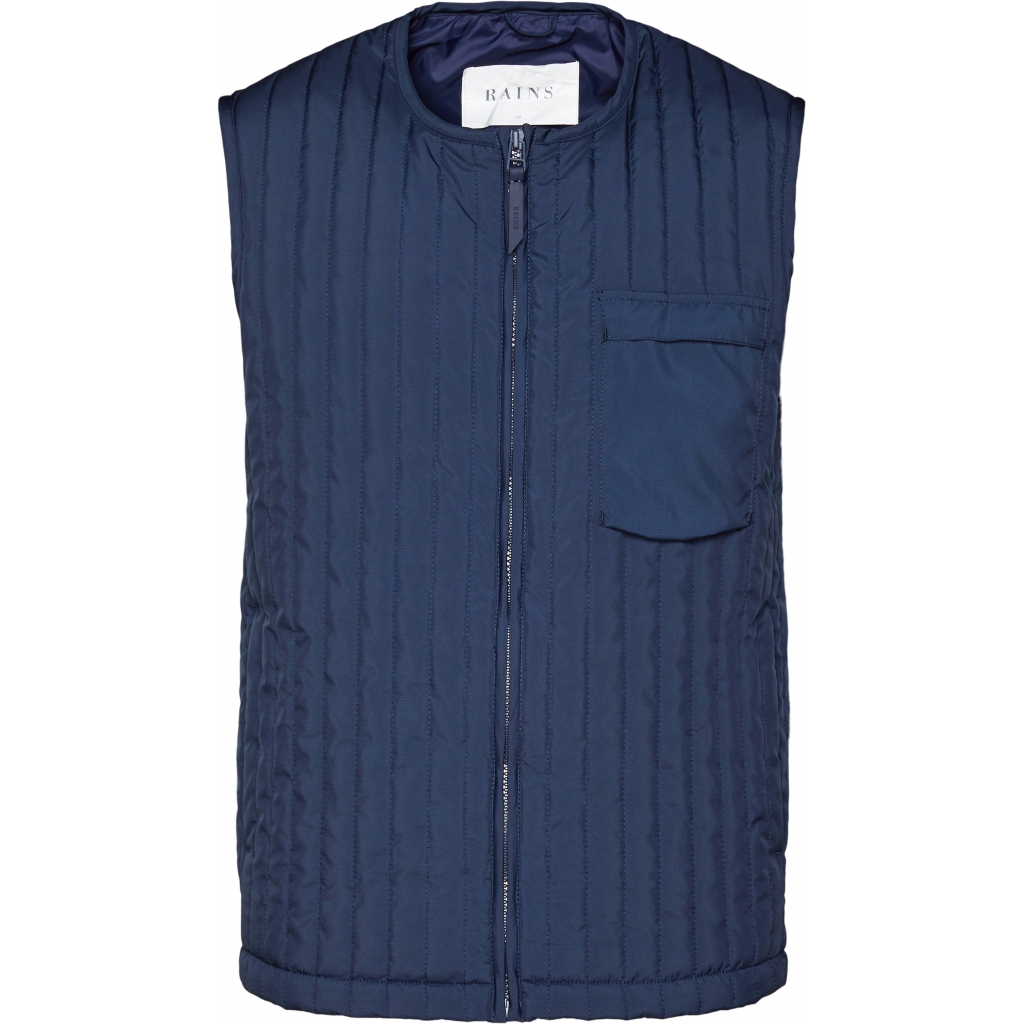 Liner Vest a été créé pour étendre l’utilisation des vêtements d’extérieur Rains Essential lorsque les températures commencent à baisser. Liner Vest est un article non imperméable de la catégorie Layers de Rains, conçu pour être attaché aux vêtements d’extérieur Essential de Rains. Unique aux Rains Liners, est une sangle en caoutchouc à l’arrière du gilet, conçue pour se connecter aux vêtements d’extérieur Rains Essential via un bouton-pression. Pour plus de chaleur, le Liner Vest est doté d’un matelassage vertical avec un rembourrage en polyester.